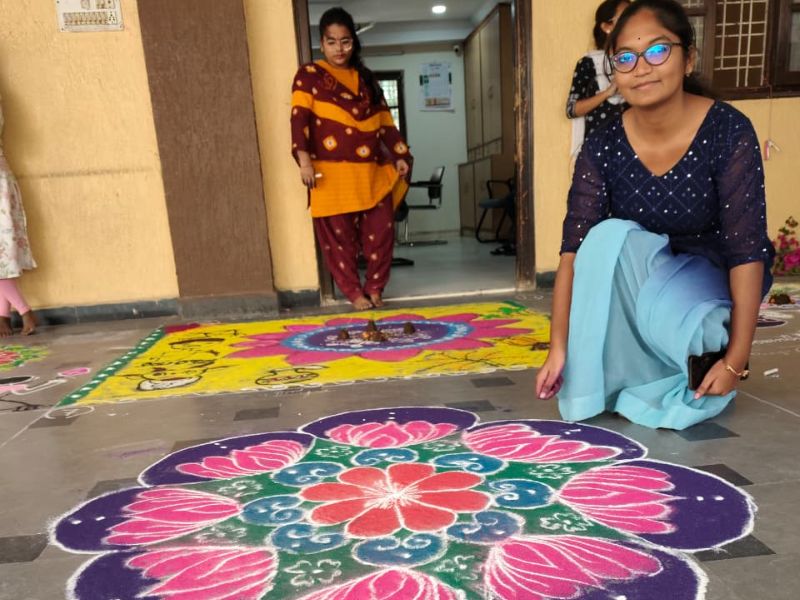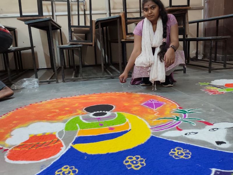 A good number of students took part in the competition, showing their artistic skills. The colors of Sankranthi adorned the corridors of the college, turning the atmosphere into a festive vibe.